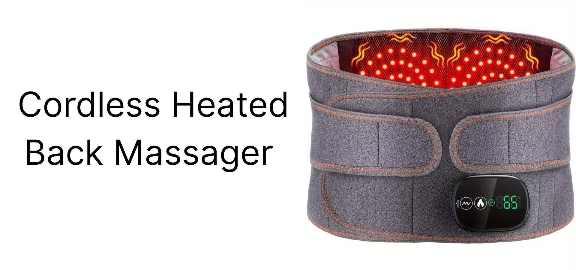 This cordless heated back massager combines soothing heat and gentle vibration to relieve back pain, relax muscles, and support your lower back. With adjustable straps, a built-in rechargeable battery, and multiple heat and massage settings, it’s perfect for daily use at home, work, or on the go.